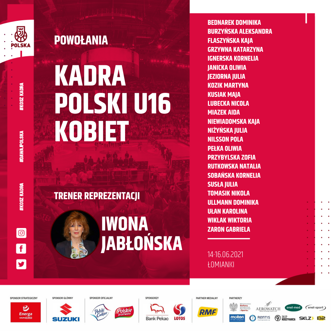 Wydział Szkolenia Departamentu Sportu Polskiego Związku Koszykówki powołał na konsultację szkoleniową Młodzieżowej Reprezentacji Polski Kobiet U16K, która odbędzie się w terminie 14-16.06.2021 w Łomiankach (woj. mazowieckie) dwie zawodniczki z Dolnego Śląska: