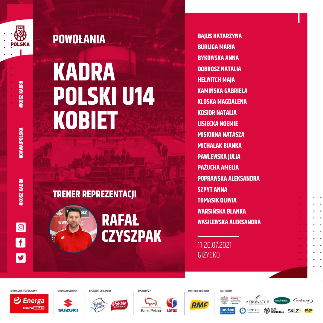 Wydział Szkolenia Departamentu Sportu Polskiego Związku Koszykówki powołal na zgrupowanie szkoleniowe Młodzieżowej Reprezentacji Polski Kobiet U14 (Giżycko, 11-20.07.2021/21-30.07.2021) trzy zawodniczki z Dolnego Śląska: