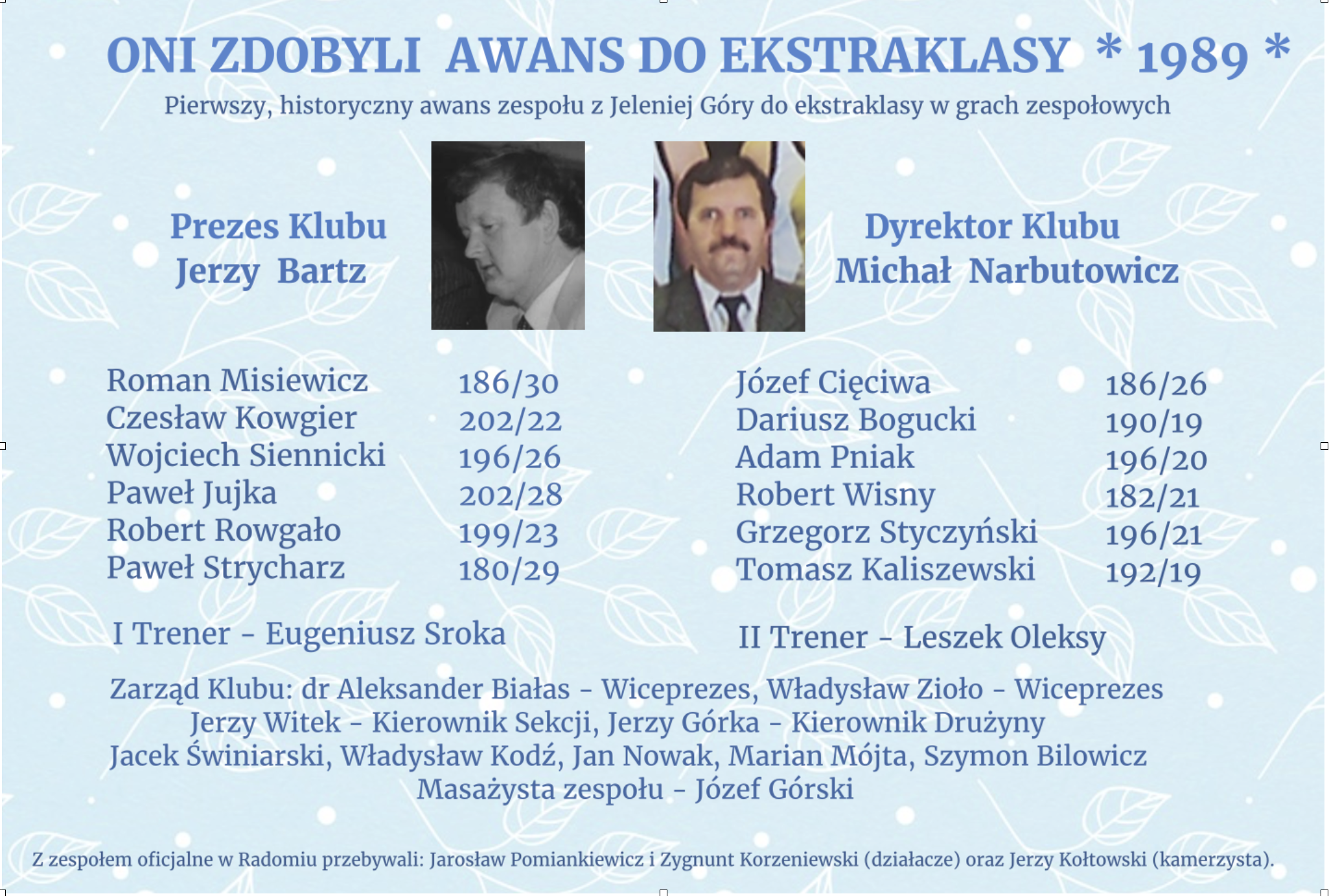 Awans koszykarzy JKS Spartakus do ekstraklasy był pierwszym w historii awansem jeleniogórskiego klubu do najwyższej polskiej ligi w grach zespołowych.